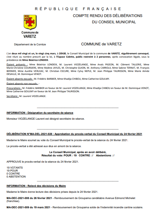 Accueil » CR Conseil Municipal » Compte rendu du Conseil Municipal du 25 mars 2021Compte rendu du Conseil Municipal du 25 mars 202121 avril 202121 avril 2021 Étiquettes:25 mars 2021conseil municipal