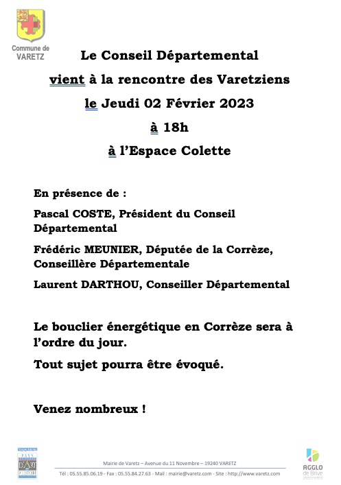 Accueil » Infos municipales » Rencontre avec le Conseil Départemental jeudi 2 février 2023 à 18h. Espace ColetteRencontre avec le Conseil Départemental jeudi 2 février 2023 à 18h. Espace Colette28 janvier 202328 janvier 2023PDF Embedder requires a url attribute Étiquettes:conseil départementalréunion publique